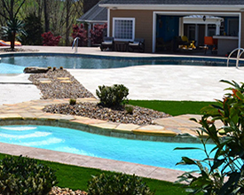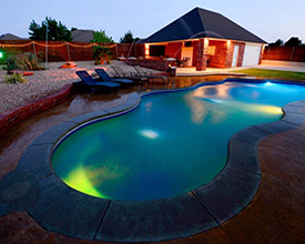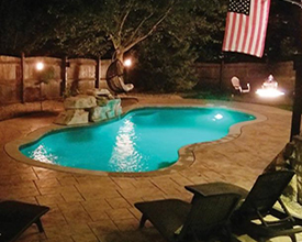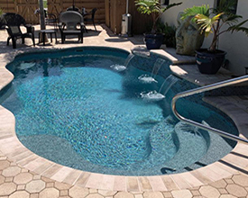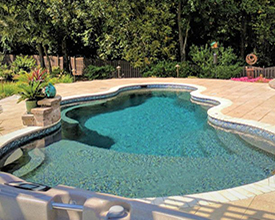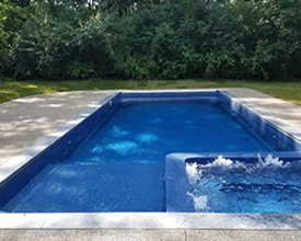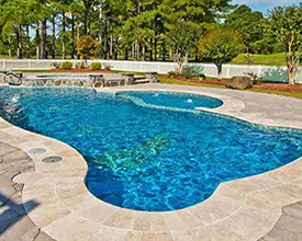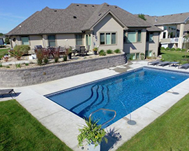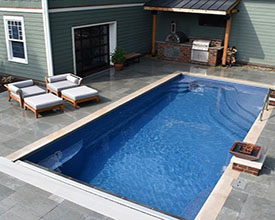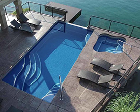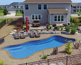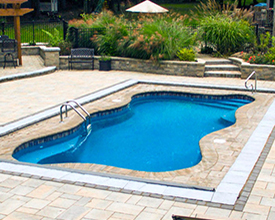 With its clean lines, a linear pool is a timeless choice. A rectangle fiberglass inground pool can be simple and straightforward or embellished with accessories, and is the optimal shape for a fiberglass inground lap pool. The free-form pool style can incorporate dramatic curves for a modern look or maximize available swimming space with a more relaxed wavy design. If you’re looking for a more fun, informal, natural-looking pool shape, free-form is your best choice.